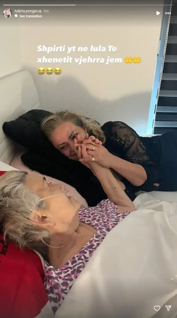 Lajmi i trishtë u bë i ditur fillimisht nga bashkëshortja e artistit, Luljeta Përgjegjaj, përmes një postimi emocional në rrjetet sociale. Ajo ndau një fotografi prekëse ku shihej pranë nënës së ndjerë të bashkëshortit, duke mbajtur dorën e saj me dhimbje, të shoqëruar me fjalët: “Shpirti yt në lule të xhenetit vjehrra jem,” duke e mbyllur me simbole lutjeje dhe pikëllimi.
