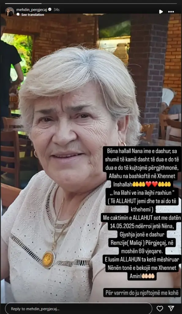 “Bëna hallall Nana ime e dashur, sa shumë të kam dashtë… do të dua e do të kujtojmë përjetësisht,” – shkroi këngëtari, mes një dhimbjeje që preku mijëra ndjekës.