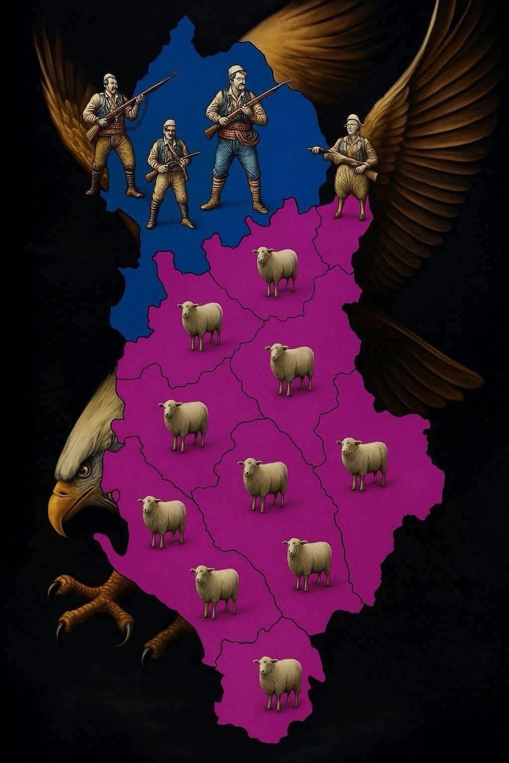 Një imazh i publikuar dhe shpërndarë gjerësisht në rrjetet sociale ka shkaktuar reagime të forta dhe të indinjuara. Bëhet fjalë për një hartë të Shqipërisë të ndarë në dy ngjyra – blu për veriun dhe rozë për jugun – e shoqëruar me simbole të qarta dhe të rënda në mesazh: luftëtarë të armatosur në veri dhe dele në jug.